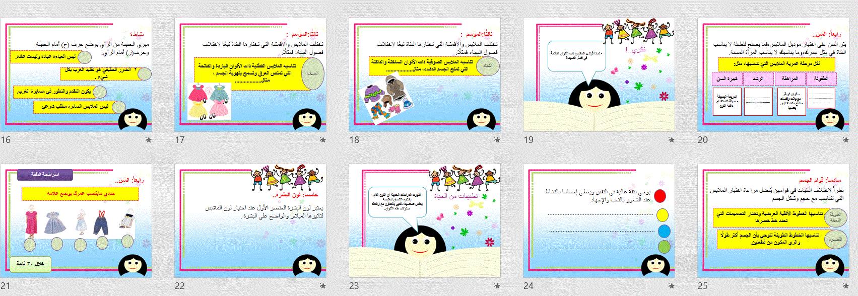 الرئيسية عروض بوربوينت بالاستراتيجيات المرحلة الابتدائية الترم الأول المهارات الحياتية والأسرية اختيار الملابس