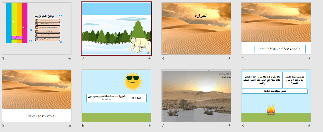 بوربوينت للدرس يبدا بتمهيد كرتوني يتخلله انشطة واستراتيجيات ولعبة ختامية