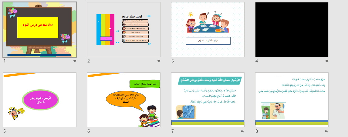 لدرس يحوي تمهيد كرتوني استراتيجيات مناسبة للتعليم الافتراضي ولعبة تفاعلية