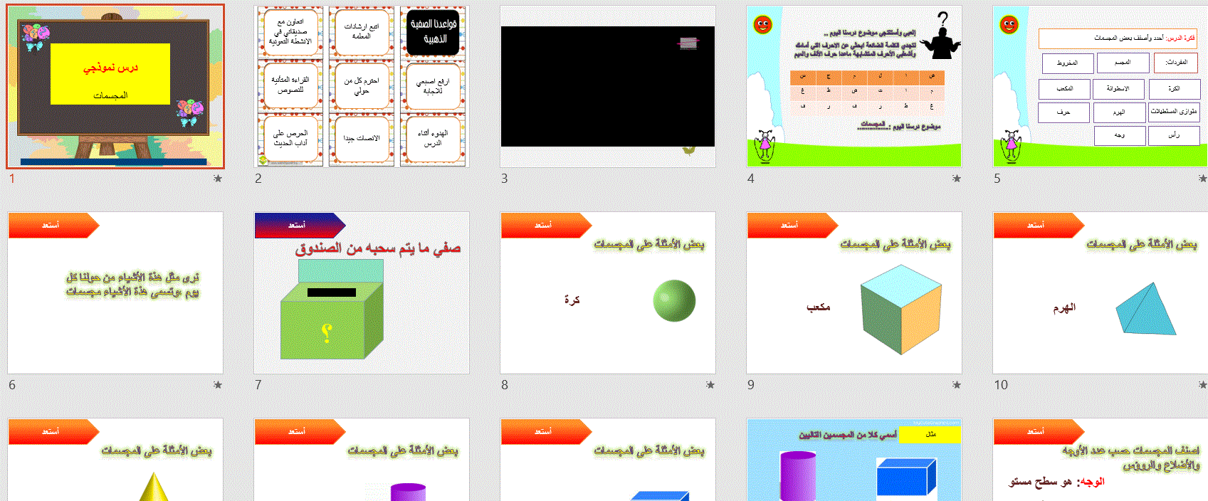 درس المجسمات – الصف الثالث