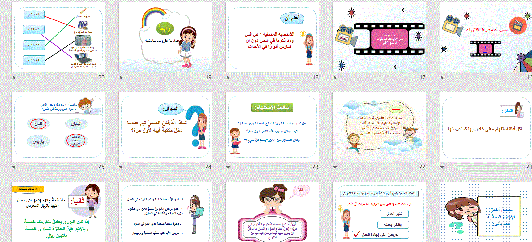 بوربوينت شيق للدرس بتنسيق جميل ورائع يتضمن فيديو كرتوني – واستراتيجيات والعاب
